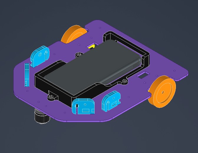Houses 4 infrared sensors, 2 ultrasonic sensors, 2 motors, and a custom-built battery pack holder.